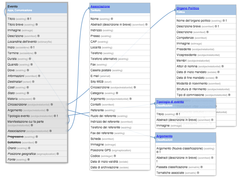 Modello dati relativo all'evento
