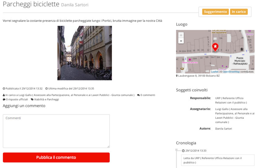sensorCivico - il dettaglio di una segnalazione